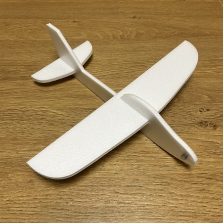 Im Kurs wird ein kleiner Wurfgleiter aus Depron (sehr leichtes, styroporähnliches Material) gebaut. Er wird zusammengesteckt und hat 30cm Spannweite.